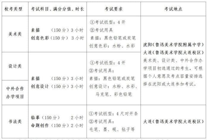 (3)符合报考条件的考生,只能在“美术类”、“设计类”、“中外合作办学项目”、“书法类”中选择一个校考类型报考。